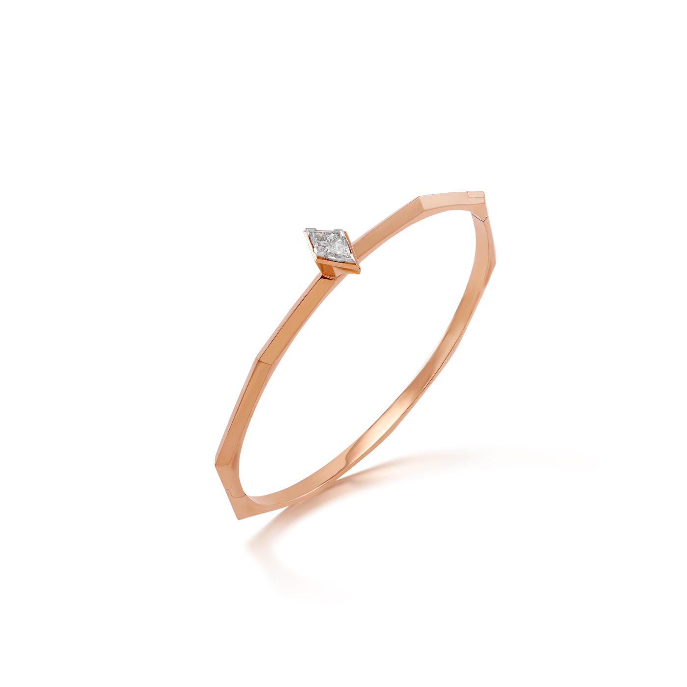 Defined by sculptural contours and structured elegance, the Limitless Large Stackable Bangle echoes the dynamism of Art Deco architecture. Crafted in luminous 18K recycled gold, this bangle showcases a geometric three-dimensional design with trillion-curve diamonds at the center, set like a sparkling pyramid. Perfect for stacking, this piece can be paired with additional stackable bangles from the collection. The Limitless earrings, necklaces, and rings complete the look.