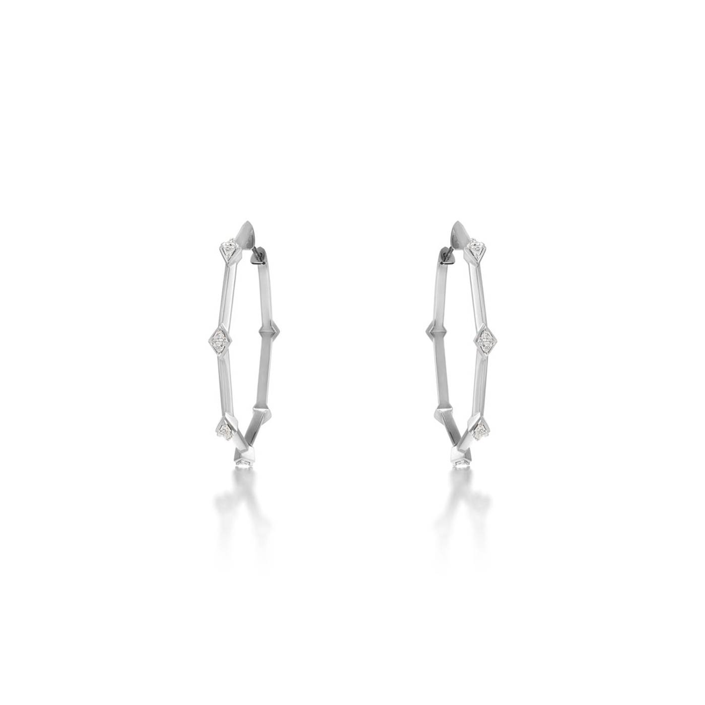 The Limitless Pyramid Hoop Earrings celebrate ambition and vision, inspired by the bold geometry of Art Deco architecture. Crafted in 18K recycled gold, these geometric hoops showcase a geometric three-dimensional design with trillion-cut faceted diamonds set like pyramids and offset by gold pyramids, making a bold statement. Explore the Limitless necklaces, bracelets, and rings to complete the look.