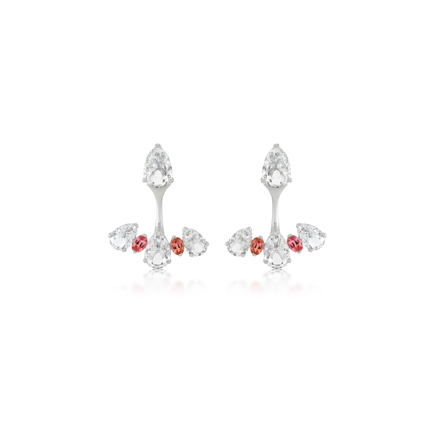 Embodying the beauty of self-expression, the Plume Flourish Blush Earrings showcase a vibrant composition of Peacock-cut diamonds and pink Padparadscha sapphires in radiating formations that evoke the dynamic movement of a peacock’s wings. Each Peacock-cut diamond is crafted with 27 upward-facing facets that evoke the strands of a plume, while the Padparadscha sapphires glow with pink-orange hues that shift with every movement, revealing new depths of color from each angle. Set in 18K recycled gold, these earrings capture the journey towards confidence and inner worth.