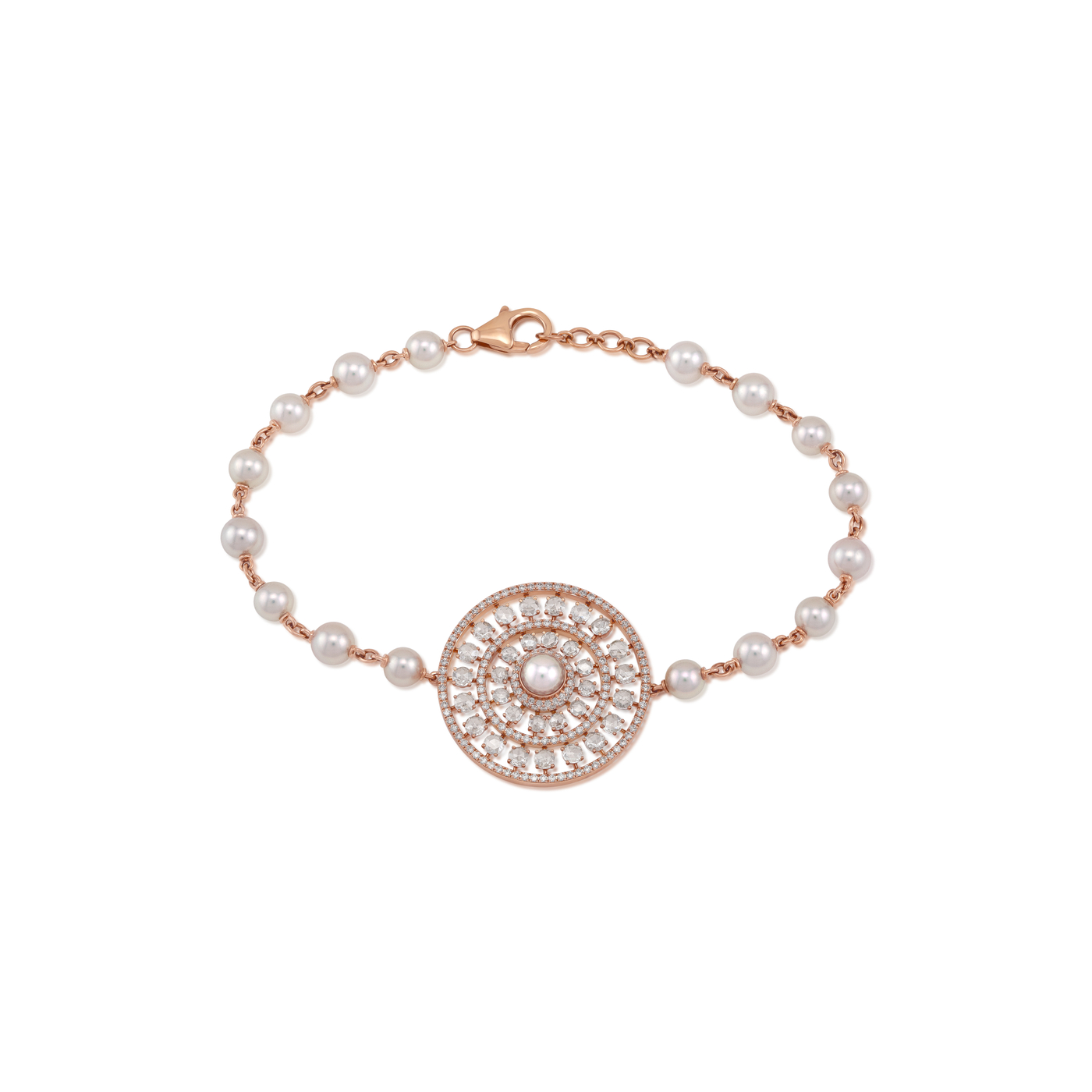 An elegant bracelet showcasing round rose-cut and full-cut diamonds with exquisite Japanese Akoya pearls.